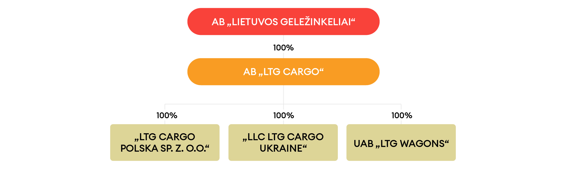 „LTG Cargo“ ir jos antrinės įmonės, būdamos LTG grupės dalimi, yra atsakingos už pagrindinės veiklos vykdymą ir nustatytų veiklos tikslų pasiekimą. Siekdama iškeltų tikslų bei tinkamo valdymo užtikrinimo „LTG Cargo“ grupė veikia savarankiškai, priima reikiamus sprendimus bei užtikrina atskaitomybę ir atsakomybę už veiklos rezultatus.